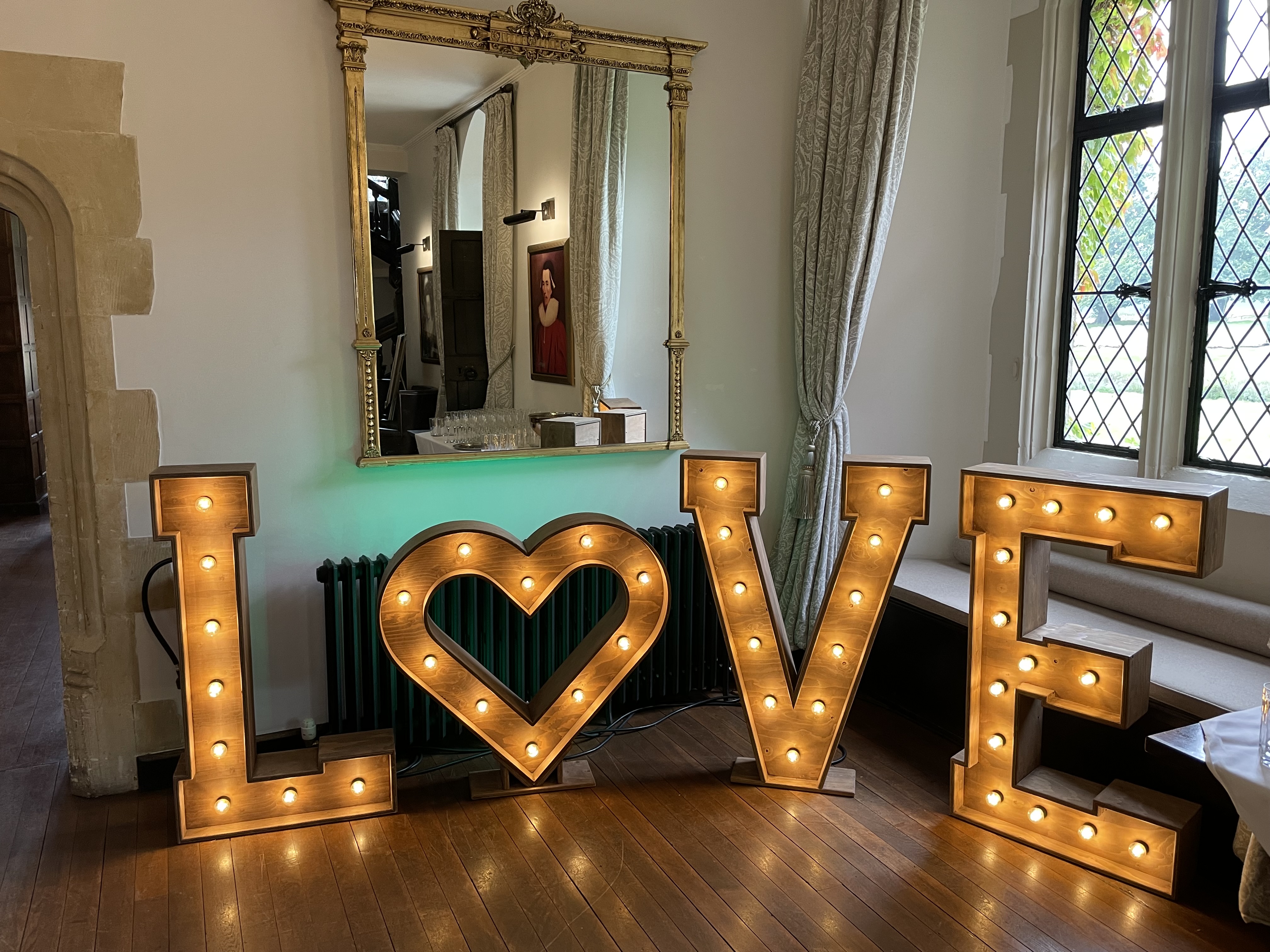 Add warmth, charm, and a personal touch to your special day with our illuminated wooden letters — available in Rustic or Vintage White finishes. Mix and match your initials, spell out meaningful words, or brighten up your event with symbols and letter boxes for a unique statement that’s truly yours.